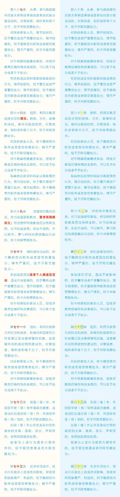 《中國共產(chǎn)黨紀(jì)律處分條例》修訂條文對照表